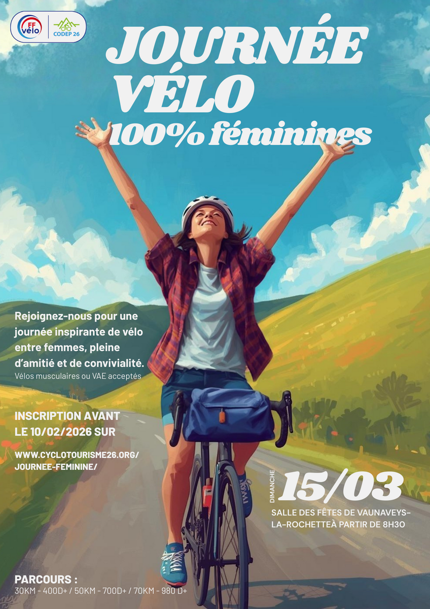 Pour tout renseignements sur la journée, cliquer sur le lien suivant: http://www.cyclotourisme26.org/journee-feminine/